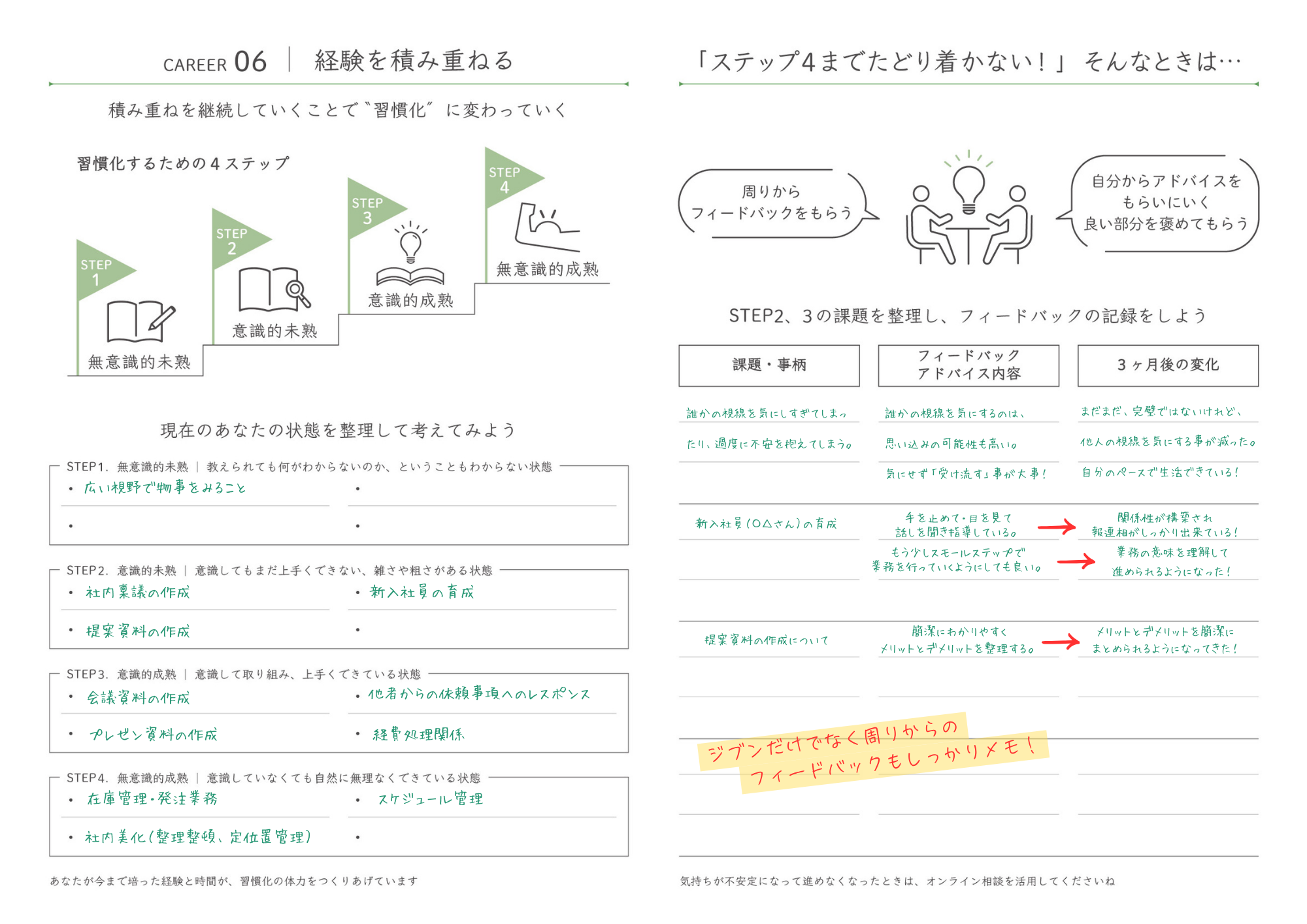 - 歩んだ道をふり返るページをめくると、変化や成長が見えてくる
