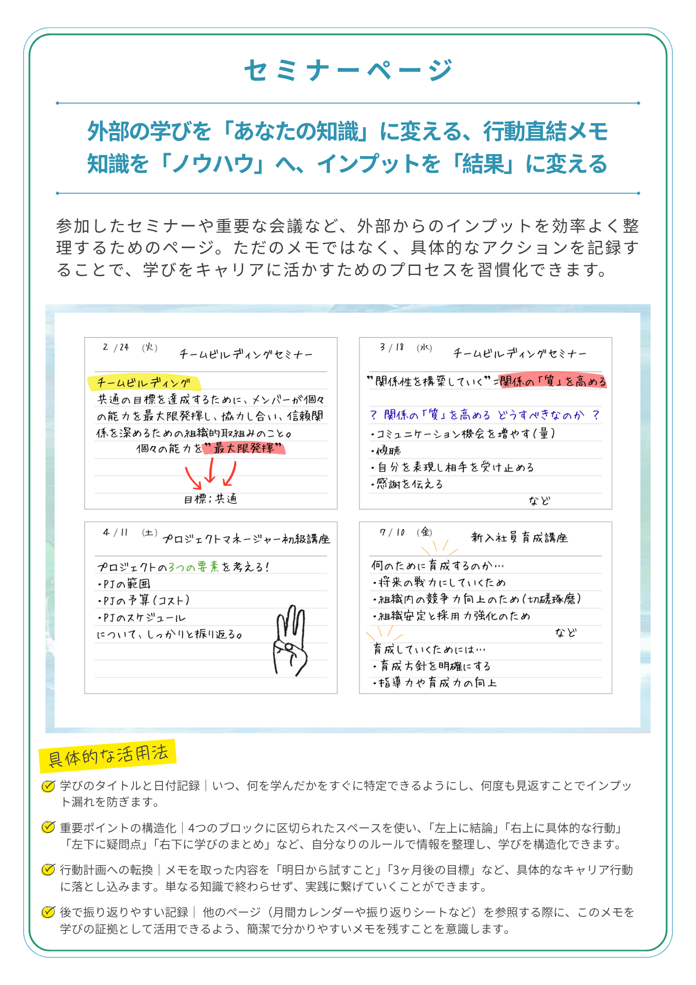 - 手帳で出来ること